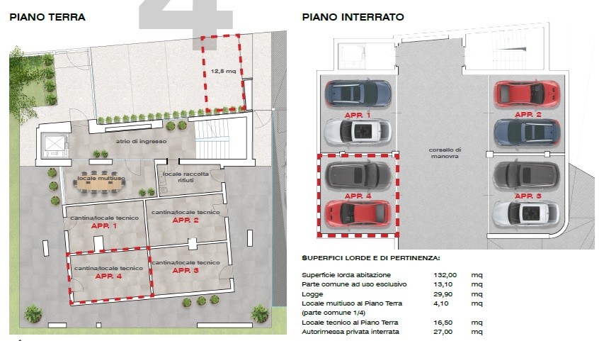 | Box/Garage - piano interrato | 27 Mq | 14 Mqc |