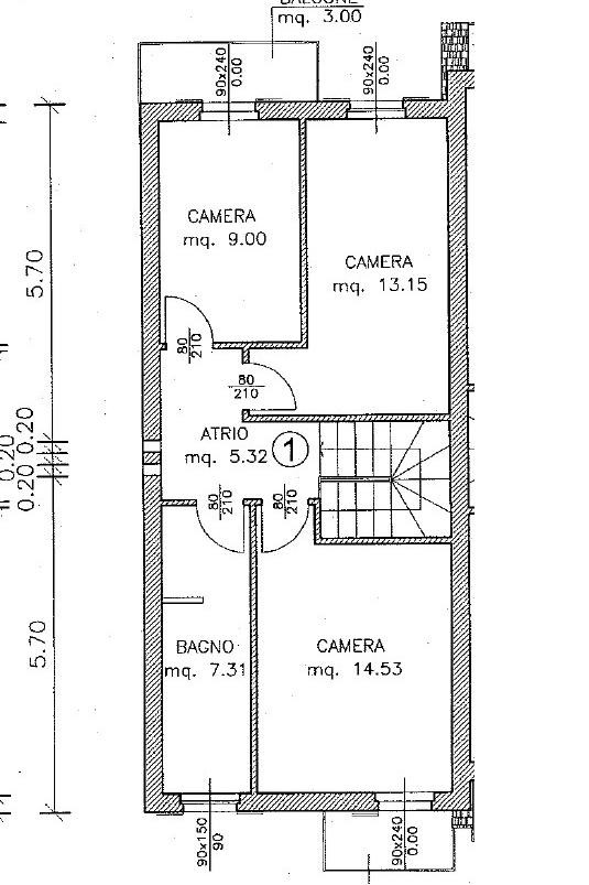 | Balcone - 1° piano | 3 Mq | 1 Mqc |